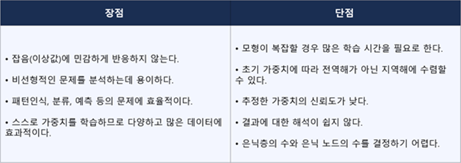 - 역전파 알고리즘을 수행하는데 있어서 많은 시간이 필요로 하는 단점이 존재한다.
